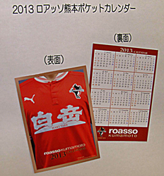 つきましては、10/7(日)ショップイベントより『2013ロアッソ熊本オフィシャルカレンダー』の予約受付を開始いたします!また、カレンダーをご予約いただきました方に、非売品の『2013ロアッソ熊本ポケットカレンダー』(カードサイズ)をプレゼントいたします。ポケットカレンダーは数に限りがありますので、お早めにどうぞ。