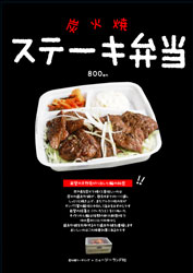○商品:炭火焼ステーキ弁当、ステーキサンドウィッチ