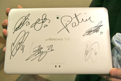 プレゼントされるサイン入りの実物のARROWSタブレットの背面