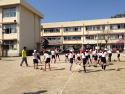 5時間目は、運動場でアカデミーの松山コーチ、横山コーチ、坂田コーチによるサッカー教室を行いました。今日はお天気も良く暖かい中、子どもたちはとても元気よくサッカーを楽しんでいました。