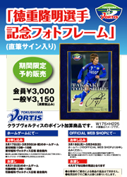 このたび、2012シーズンをもって現役引退をすることを発表した徳重隆明選手の直筆サイン入り記念フォトフレームを、3月17日(日)に開催するJ2第3節ギラヴァンツ北九州戦より受注販売することが決まりましたのでお知らせします。