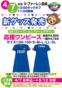 また、新グッズ「応援ワンピース」のご予約販売も本試合より実施いたします。