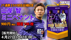サンフレッチェ広島では、4月6日(土)Jリーグディビジョン1第5節vs.横浜F・マリノスにて達成した、山岸智選手の「J1通算250試合出場記念ミニペナント」を4月27日(土)より販売開始いたしますので、お知らせいたします。