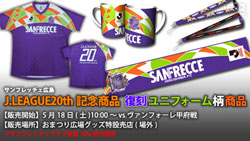 サンフレッチェ広島では、「J.LEAGUE 20th記念商品 復刻ユニフォーム柄商品」を5月18日(土)Jリーグディビジョン1第12節vs.ヴァンフォーレ甲府の試合会場にて販売いたしますのでお知らせいたします。