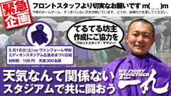 この状況を打開すべく5月18日(土)J1リーグ第12節vs.ヴァンフォーレ甲府@エディオンスタジアム広島14:00キックオフの試合前におきまして、「てるてる坊主を作ろう!」イベントを実施いたしますので、お知らせいたします。