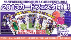 サンフレッチェ広島では、2013年7月13日(土)セレッソ大阪戦、および8月17日(土)名古屋グランパス戦の試合会場にて、『サンフレッチェ広島カードフェスタ』のイベントを開催いたしますので、お知らせいたします。