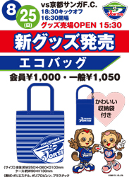 このたび、8/25(日)京都サンガF.C.戦において、新グッズ「エコバック」を販売することとなりましたのでお知らせいたします。