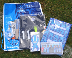 2012フットサル日本代表Tシャツ(KAZUネーム&番号入り)など三浦選手のグッズと、横浜FCグッズのセットを特別価格10,000円にて販売します。