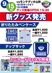 9月15日(日)モンテディオ山形戦において、新グッズ「折りたたみペンケース」と「ナップサック」を販売することとなりましたのでお知らせします。