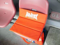 スタジアムシートクッション付きのトートバッグが新登場!トートバッグとシートクッションを分けて使うだけでなく、カバン内にシートクッションがピッタリ収納され持ち運びに便利です。さらにスタジアムでは専用の折りたたみクッションを座席に敷いて、バッグと同色の紐同士をつなげればバッグを座席の下にぶら下げることができ足元をすっきりさせて観戦することができる機能的なアイテムです!