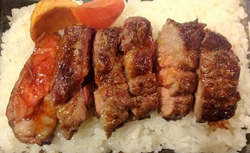(1)炭火焼き牛ステーキ重(限定50食) 700円