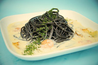 黒い麺に白いホワイトソース!富山戦限定スペシャルメニューです!