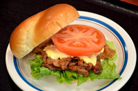 片手でも食べれる千屋牛バーガー!肉の旨みがクセになること間違いなし!