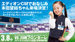 3月8日(土)に行われる、J1リーグ第2節vs.川崎フロンターレ(12:30キックオフ@エディオンスタジアム広島)『エディオンスポンサードゲーム』において、エディオンのCMでおなじみの本田望結さんの来場が決定いたしましたので、お知らせします。