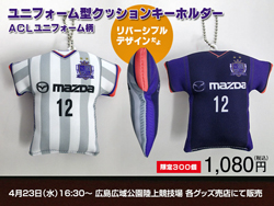 サンフレッチェ広島では、4月23日(水)AFCチャンピオンズリーグ グループリーグ第6戦 vs.セントラルコースト・マリナーズの試合会場にて、ユニフォーム型クッションキーホルダー ACLユニフォーム柄を販売いたしますので、お知らせいたします。