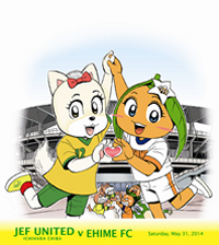 5月31日(土)愛媛FC戦では、松山市および愛媛県のPRイベントを実施いたします。スタジアム内では愛媛県の物産品販売を行うほか、愛媛松山の都市伝説「蛇口からみかんジュース」の無料体験を行います。また、愛媛県出身のフリースタイルフットボール世界チャンピオン「徳田耕太郎氏によるパフォーマンス」や「ゆるキャラ野球拳じゃんけん大会」などのステージイベント、サッカー漫画作家である能田達規先生の「オリジナルイラスト色紙プレゼント&サイン会」など盛りだくさんの内容となっています。愛媛FCのマスコットキャラクター「オ〜レくん」や熱烈サポーター「一平くん」も登場予定!是非、フクアリにご来場ください!