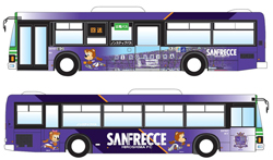 バス車体にサンフレッチェ広島のロゴやキャラクター等をラッピングし、車内の内装および選手によるバス停留場案内のアナウンスが流れるなど、バス全体がサンフレッチェ広島一色となっています。