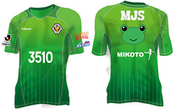 コラボデー開催に先立ち、「東京ヴェルディ×とある科学の超電磁砲」コラボグッズの第1弾として、作品中の登場人物4人の番号・ネームが入ったコラボユニフォームを完全受注生産で販売致します。背中には主人公・御坂美琴が大好きな作中のキャラクター「ゲコ太」を大きくあしらい、その下にはネームと共に美琴のシルエットをプリント。さらに左袖には作品のタイトルロゴが入った、コラボユニフォームです。