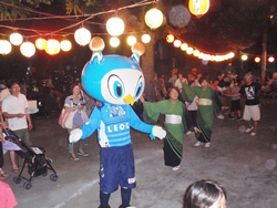 当日は、松原商店街出展のゲームコーナーのお手伝いもしながら盆踊りの輪の中に入って皆さんと盆踊りに参加します!皆さんも、フリ丸と一緒に盆踊りに参加しましょう!