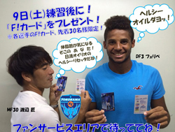 夏休み企画として、8月の土曜日の練習後に先着30名様限定で各選手から30枚ずつ、ファン・サポーターの皆さまに「F!カード」をプレゼントいたします。
