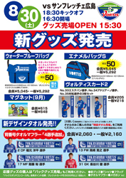 このたび、8月30日(土)サンフレッチェ広島戦『徳島市民デー』において、「ウォータープルーフバッグ」や「エナメルバッグS」などを新発売することとなりましたのでお知らせいたします。