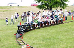 岐阜県立岐阜工業高等学校機械科の皆さんの協力で「FC岐阜×ミニSL2014」が芝生広場に登場!乗車料は無料で1周45mのコースを2周回ります。