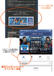 アンケート終了時に出る画面をキャプチャーまたは出力していただき、横浜FC公式フェイスブックの「いいね!」画面を下記の場所にてご提示頂きますと、11月9日(日)ファジアーノ岡山戦チケット(A自由席)1枚をプレゼント致します。
