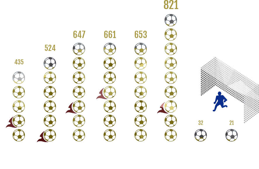これまでの大会を通して生まれたゴールの数は3,794ゴール。