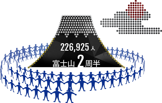 これまでキッズイレブンの参加者は226,925人。参会者全員が手を繋ぐと富士山を2周半できる。(J.LEAGUE.jp編集部調べ)