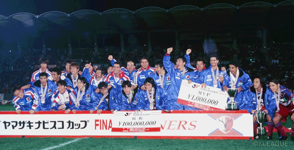 磐田のホームで行われた第1戦は、1-1で迎えた86分に、ジョルジーニョが決勝ゴールを奪い、鹿島が先勝。ホームでの第2戦でも圧倒的な強さを見せた鹿島は、マジーニョの2ゴールなどで5-1と快勝。2戦合計7-2の大差で磐田を破り、鹿島が初優勝を果たした。