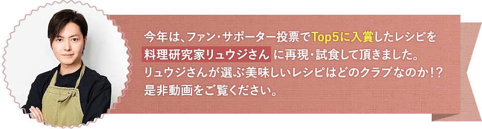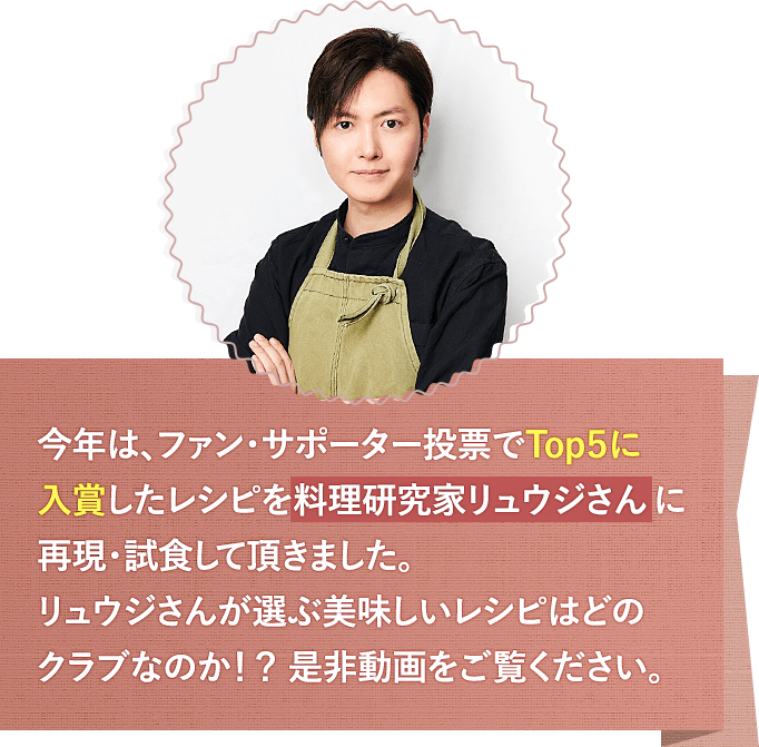 Jリーグ公式Twitter(@J_LEAGUE)から、期間中随時投稿するクラブ別のレシピ紹介ツイートをRTすることで投票可能です。