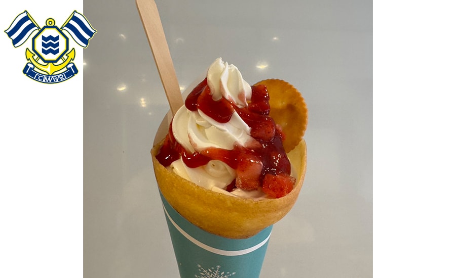 ふんわり甘いバニラソフトクリームに、フレッシュなけずりいちごをたっぷりミックス。甘酸っぱいいちごと濃厚なソフトが絶妙に絡み合い、さっぱりとした後味に仕上げました。仕上げに香ばしいルヴァンプライムを添えて、サクサク食感とほんのり塩味がアクセント。