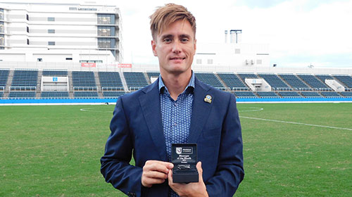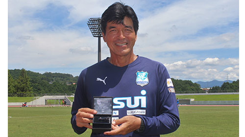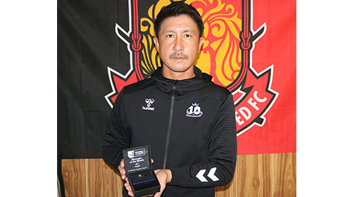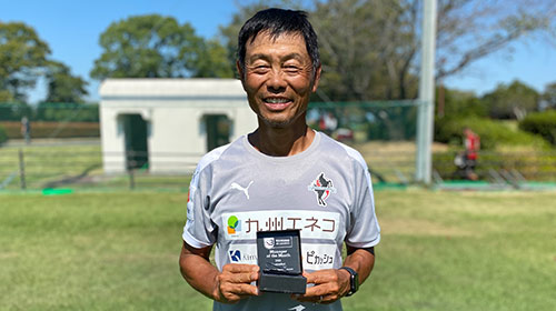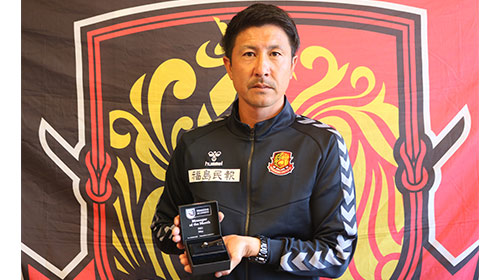 - この度、名誉ある賞を頂く事ができ、大変嬉しく思います。まずは4月末にクラブ内で新型コロナウイルスのクラスターが発生し、大変厳しい状況の中ご対応いただいた保健所、医療従事者の方々に、敬意と感謝を表したいと思います。そして、コンディションもままならない中でも必死に戦ってくれた選手、スタッフ、フロント、クラブを後押ししてくれているサポーター、スポンサーと福島ユナイテッドに関わる全ての方々に感謝いたします。この受賞に満足せず選手、クラブとともにさらに成長し、J3優勝という目標のために全力で戦っていきたいと思います。