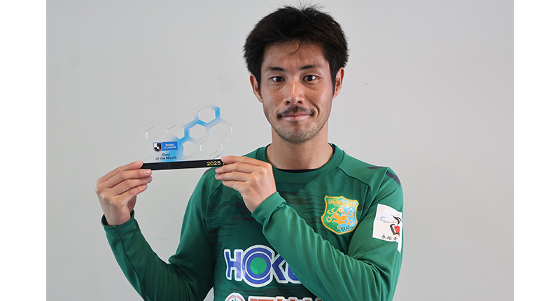 - この度はJ3リーグ4月の月間ベストゴールに選出していただいたことを大変光栄に思います!この結果を出せたのも、監督はじめコーチングスタッフ、トレーナー、マネージャー、チームメイトのおかげだと思っています!また、ファン、サポーターの応援が本当に力になっています!この感謝の気持ちを忘れずに、結果でチームに貢献できるように努力していきます。