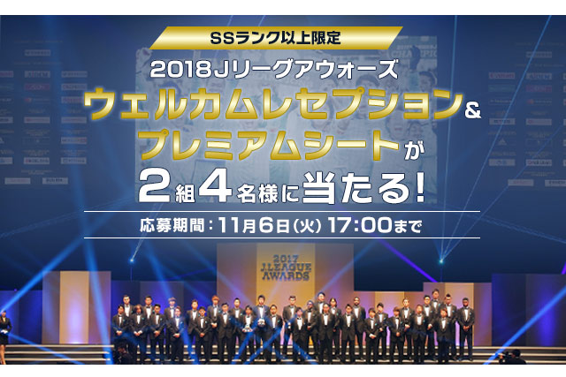 SSランク以上限定!2018Jリーグアウォーズ ウェルカムレセプション&プレミアムシートが2組4名様に当たる!【Club J.LEAGUE】