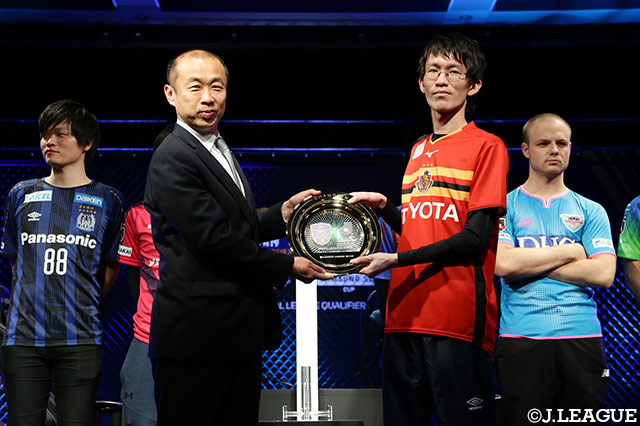 「本当に嬉しいです。ありがとうございます。慣れていないステージ上での戦いでしたが、自分のサッカーができて良かったです。決勝で対戦したしーしーぶいさんとは、過去に何度も対戦をしたことがありました。試合前までは、負ける気がしていましたが、勝つことができて最高です。今回はたくさんの名古屋のファン・サポーターの方にサポートをしていただき、がんばることができました。今後の目標としては、世界大会でまずは1勝できるようにしたいと思います」