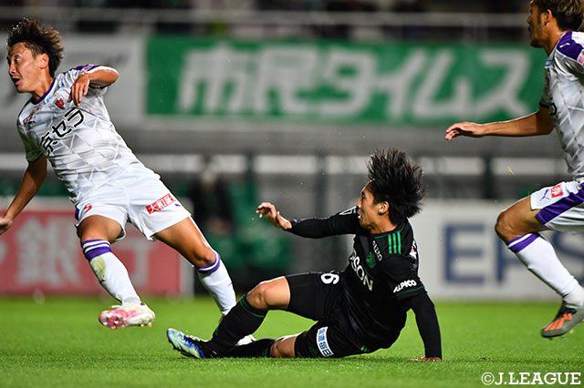試合は11分に河合 秀人のゴールで松本が先制するも、21分に宮吉 拓実のゴールで京都が同点に追いつく。しかし33分に新加入の伊藤 翔のゴールで松本が勝ち越しに成功。ところが粘る京都は51分にまたしても宮吉が決めて、再度同点に追いついた。その後は互いにチャンスを作りながらも決定打が生まれず、2-2の引き分けで終了。松本は連敗を3でストップしたものの、4試合勝利なし。京都は2試合未勝利で首位浮上はならなかった。
