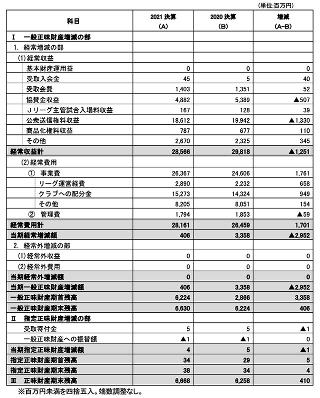 本日ご決議いただきました決算の内容、それからJリーグの財務状況についてのご説明は以上です。