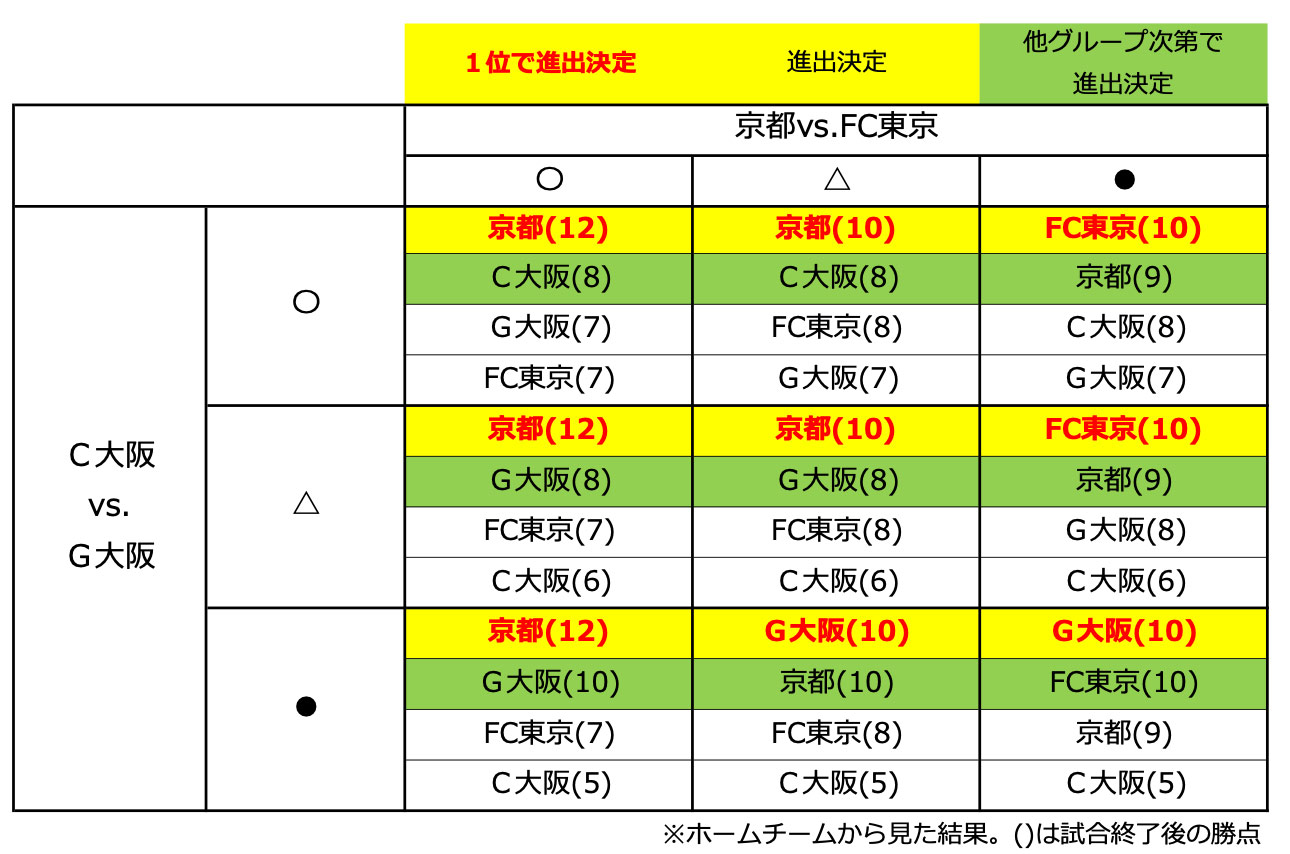 【G大阪のプライムステージ進出決定条件】