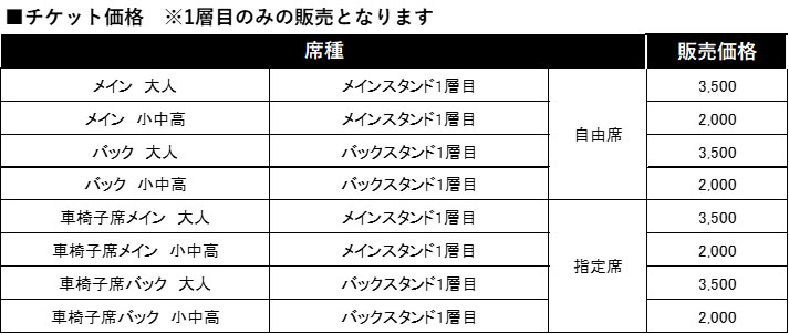 ※スタンド席は全席自由、車いす席は指定席での販売となります。