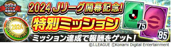 本キャンペーンでは、各種アイテムが手に入る「2024Jリーグ開幕記念!特別ミッション」や、2023シーズンに活躍した各クラブの選手、総勢40名が登場する「2023シーズンフォーカスドプレーヤー」カードが手に入る「2024Jリーグ開幕記念!チーム強化11連ガチャ」などが開催されます。