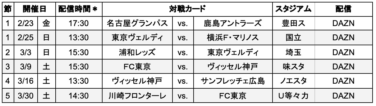 ※第6節以降の情報はDAZNホームページにて随時ご案内いたします。