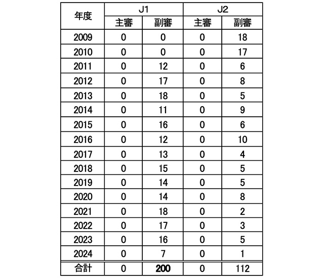 本日開催 2024明治安田J1リーグ 第10節 ジュビロ磐田 vs. FC町田ゼルビア(ヤマハスタジアム(磐田))の試合において、Jリーグ担当審判員 武田 光晴 氏のJ1通算副審担当試合数が200試合となりましたのでお知らせいたします。