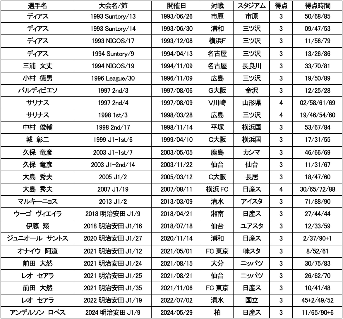 【横浜F・マリノス J1リーグ戦 ハットトリック一覧】