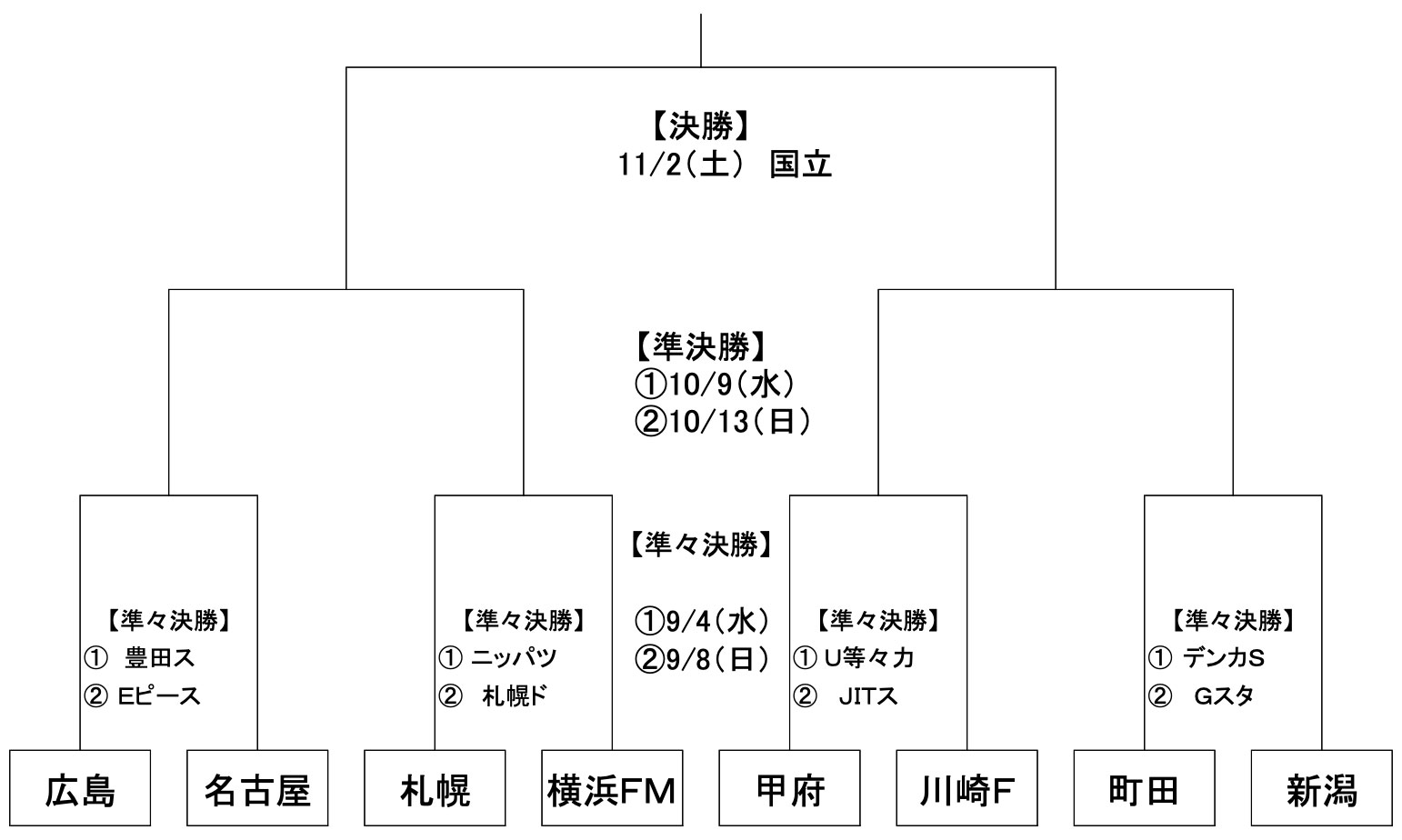※準々決勝・準決勝:第1戦はトーナメント表右側のチームのホームゲームとし、第2戦は左側のチームのホームゲームとする