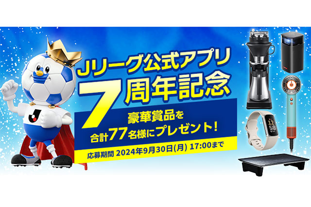 Jリーグ公式アプリ7周年記念!豪華賞品を抽選で77名様にプレゼントいたします。