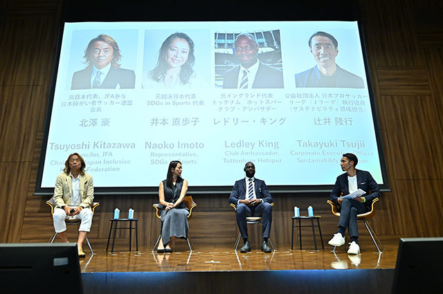 午後の部ではクラブ関係者向けにノリス氏とカレン氏が講演を行った後、参加者がワークショップを実施。カンファレンスの最後にはトッテナムのOBで元イングランド代表DFのレドリー キング氏が登壇。日本障がい者サッカー連盟会長で元日本代表の北澤豪氏、元競泳日本代表の井本氏とともに「サステナビリティ推進におけるアスリートの役割」をテーマに、パネルディスカッションを行った。