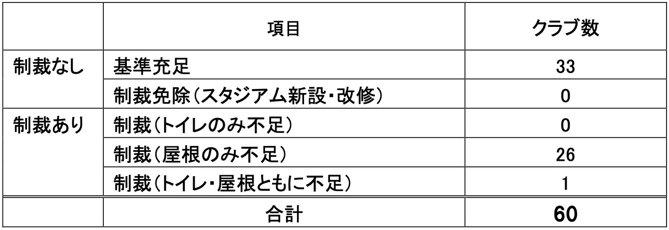 ■ホームスタジアムのトイレの数および屋根のカバー率に関するB等級基準未充足