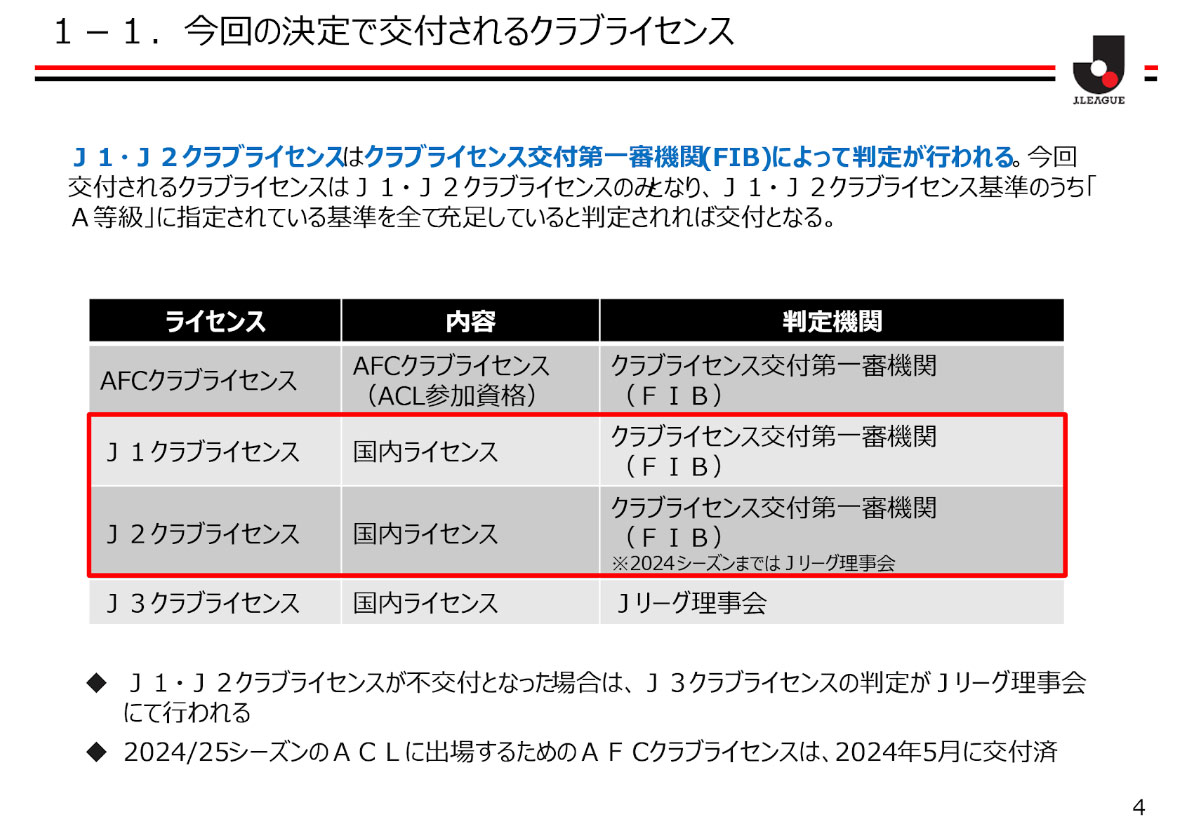 FIB決定による2025シーズンJ1クラブライセンス判定の概要についてご説明いたします。