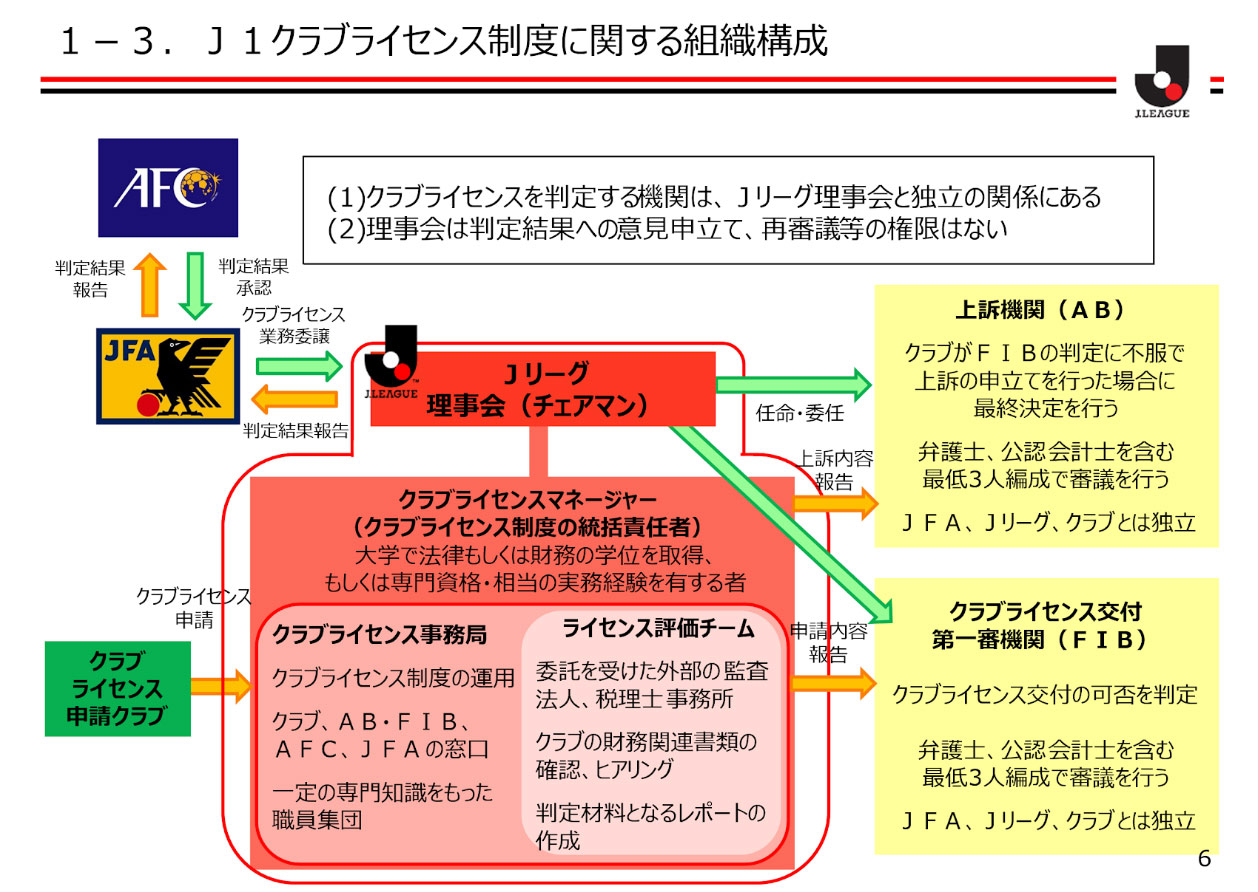AFCから日本サッカー協会(JFA)にクラブライセンス判定承認の指示が来ており、日本においてはJFAからJリーグに委譲する形でクラブライセンス制度の運用を行っています。
